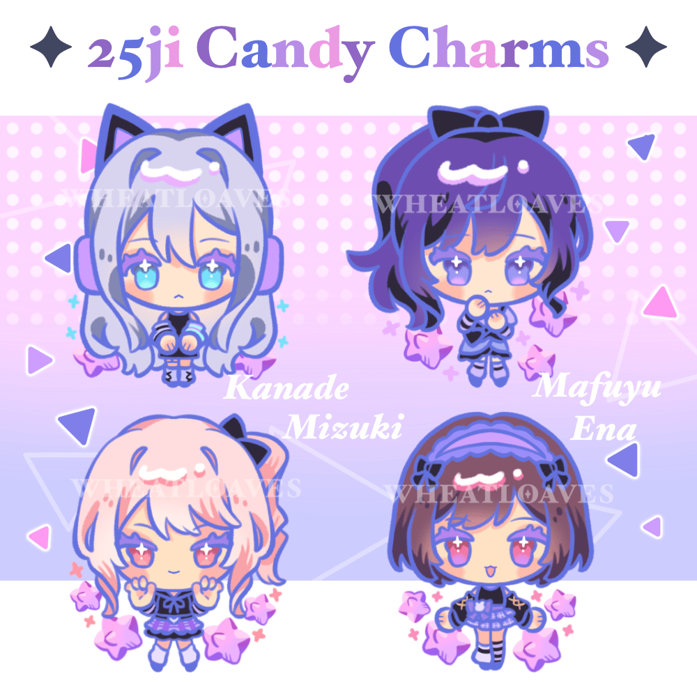 Some konpeito for you to munch on at 25:00! Dark decora 25ji girlies are printed on translucent wavy acrylic, giving them a grape-flavored melted candy appearance!