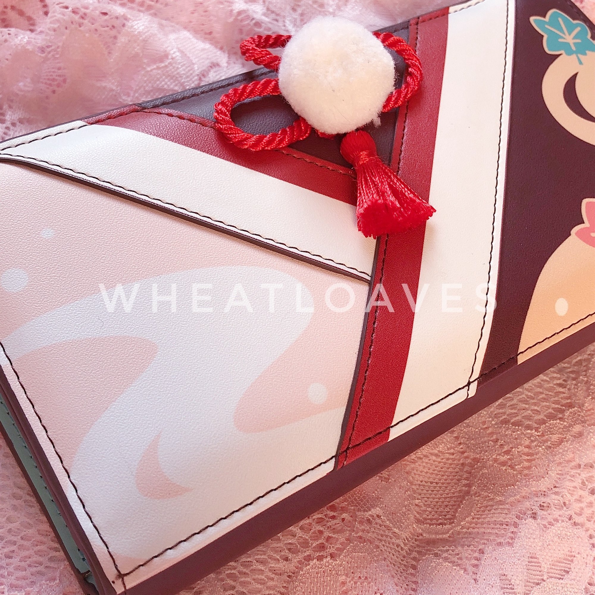 Kazuha-inspired wallet! This wallet showcases the maple motif found in Kazuha's outfit and gameplay. Open it up for a surprising anemo-colored interior.
